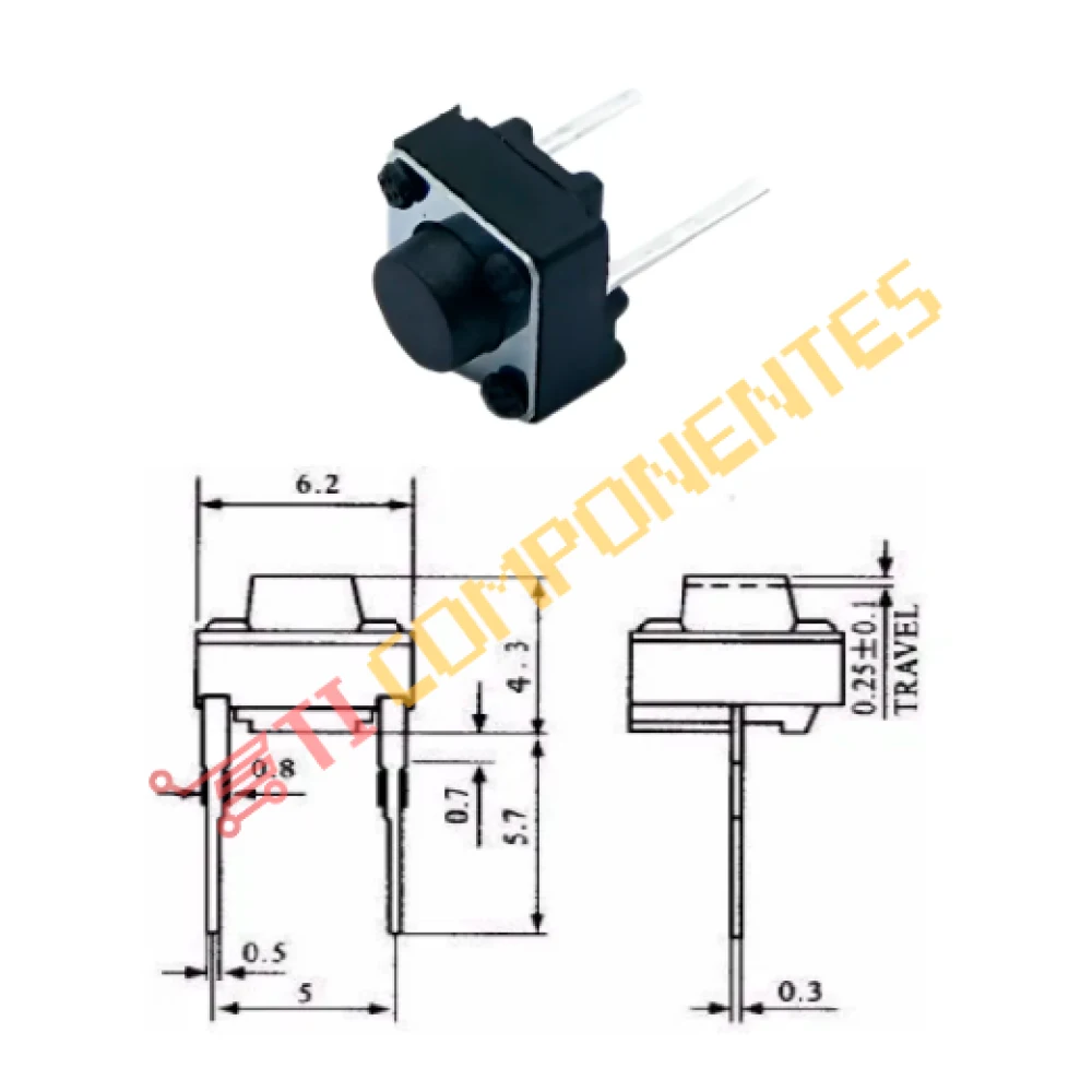 Chave Tactil 6x6x4.3mm 2t 180 Graus
