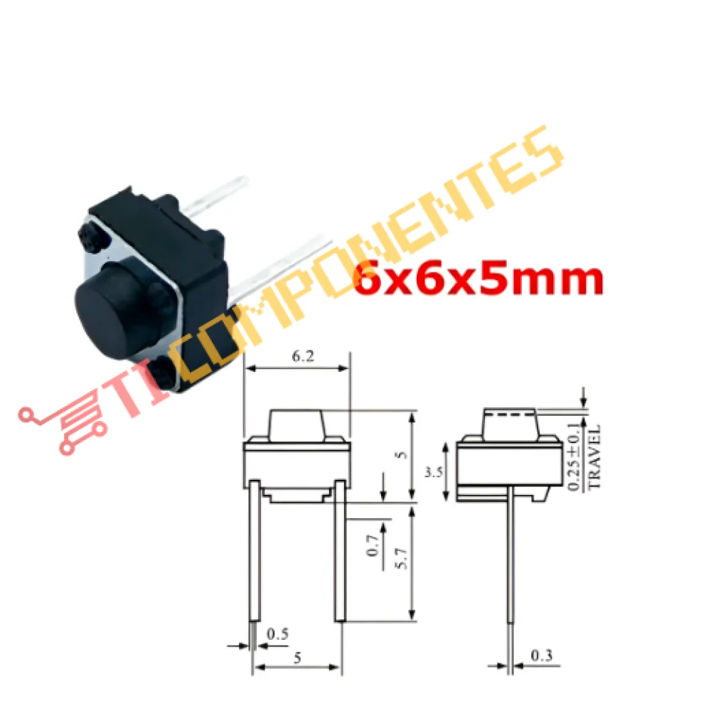 Descrição: A Chave Táctil 6x6x5mm é um componente eletrônico tipo push-button, amplamente utilizada em projetos de automação, eletrônica embarcada, controles remotos, painéis de comando e diversos dispositivos eletrônicos. Seu formato compacto e acionamento suave garantem confiabilidade e longa vida útil.