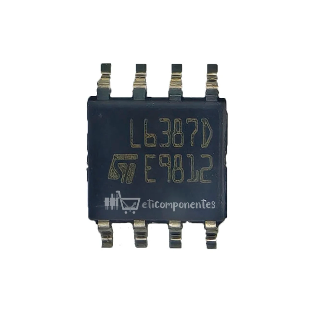 O L6387D é um driver de alta tensão para controle de MOSFETs ou IGBTs em aplicações industriais e automotivas. Ele permite acionamento de lado alto e lado baixo com excelente imunidade a ruído e alta corrente de saída.